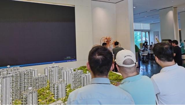 到达项目现场,《华夏时报》记者注意到,深业翠微谷整个售楼部的人气高涨,堪比热门景区,项目沙盘周边聚集了大量看房的人群,项目广播不时在大厅播报新的认购消息,传统的砸金蛋、爆礼花也推动着现场的氛围。