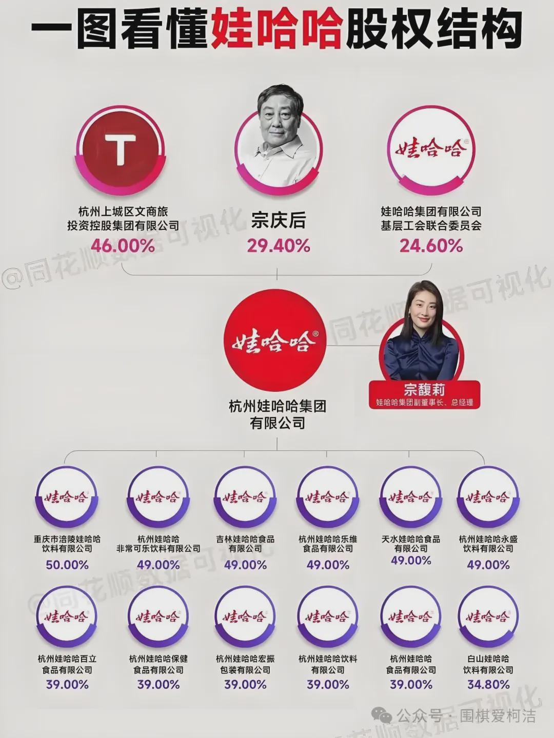 过去很多人都认为娃哈哈是的,是宗家的。其实不然七星配资 ,杭州上城区文商旅投资控股集团有限公司持股46%,是娃哈哈集团第一大股东,娃哈哈集团由杭州上城区国资委实际控制。