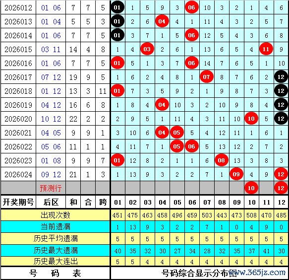 石浩第2026025期大乐透后区分析:后区上周星期三后区奖号为05和06,上期开出奖号09和12,最近9周星期三与最近9期后区奖号大小比分别为5:13和9:9,奇偶比分别为8:10和7:11,本期后区注意全大组合,参考号码07、09、10、12。