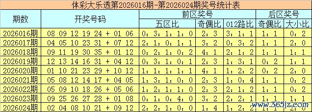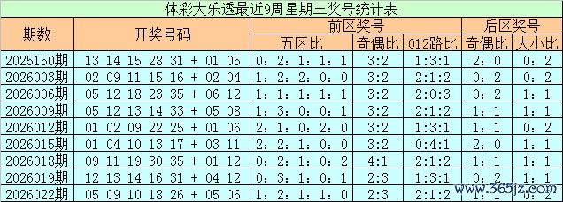 上期回顾:体彩大乐透上周星期三(第2026022期)奖号为05 09 10 18 26 + 05 06,前区奖号五区比为1:2:1:1:0,奇偶比为2:3,012路比为2:1:2,后区奖号奇偶比为1:1,大小比为0:2。