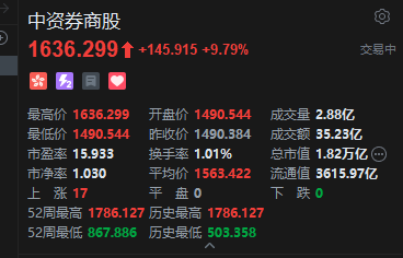 港股中资券商股午后持续拉升鼎冠优配,华泰证券、东方证券涨超13%,中信证券、广发证券涨超11%,中州证券涨超10%,中金公司、中国银河涨超9%,国联民生、申万宏源涨超8%。