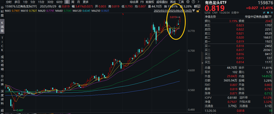 盘面上,或由于上述重磅政策利好,今日(9月29日)揽尽有色金属行业龙头的有色龙头ETF(159876)强势上攻,场内价格盘中飙涨超3.4%,上探2021年9月以来的高点。