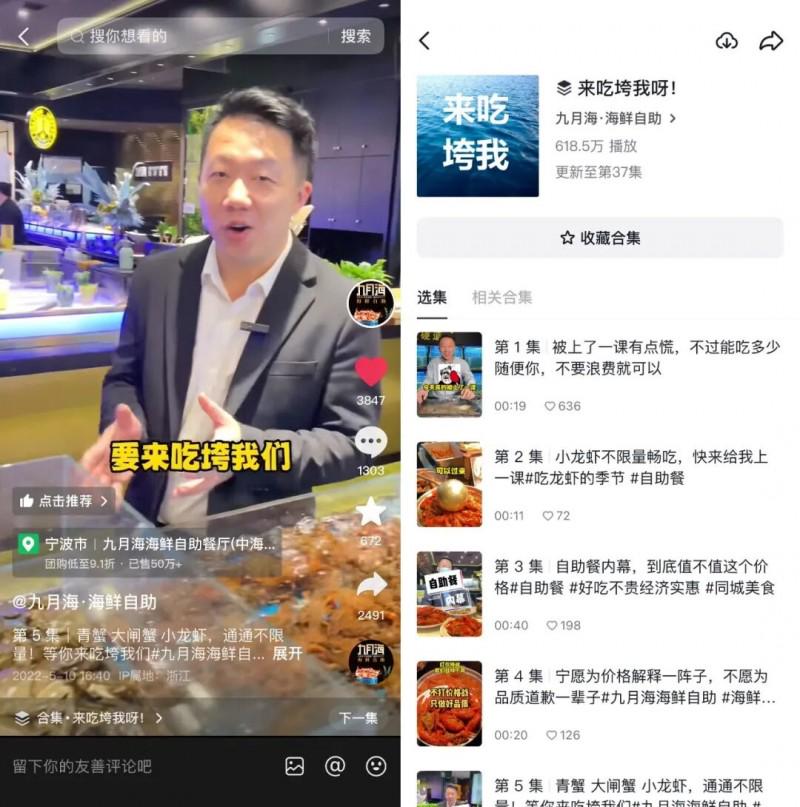 团队慢慢掌握了门道,好内容的核心是对准顾客真正关心的内容。备受欢迎的“吃垮系列”的创意就来源于此。他拍过许多条如何“吃垮九月海”的短视频,教给网友各种攻略,比如“先吃刺身,再吃海鲜,不喝饮料,只吃贵的”。老板自己就是一个“钻石级别”的自助餐爱好者,深谙客人的心理。他甚至分享过,自己在九月海吃自助,最多的一次吃回了四百多的成本。